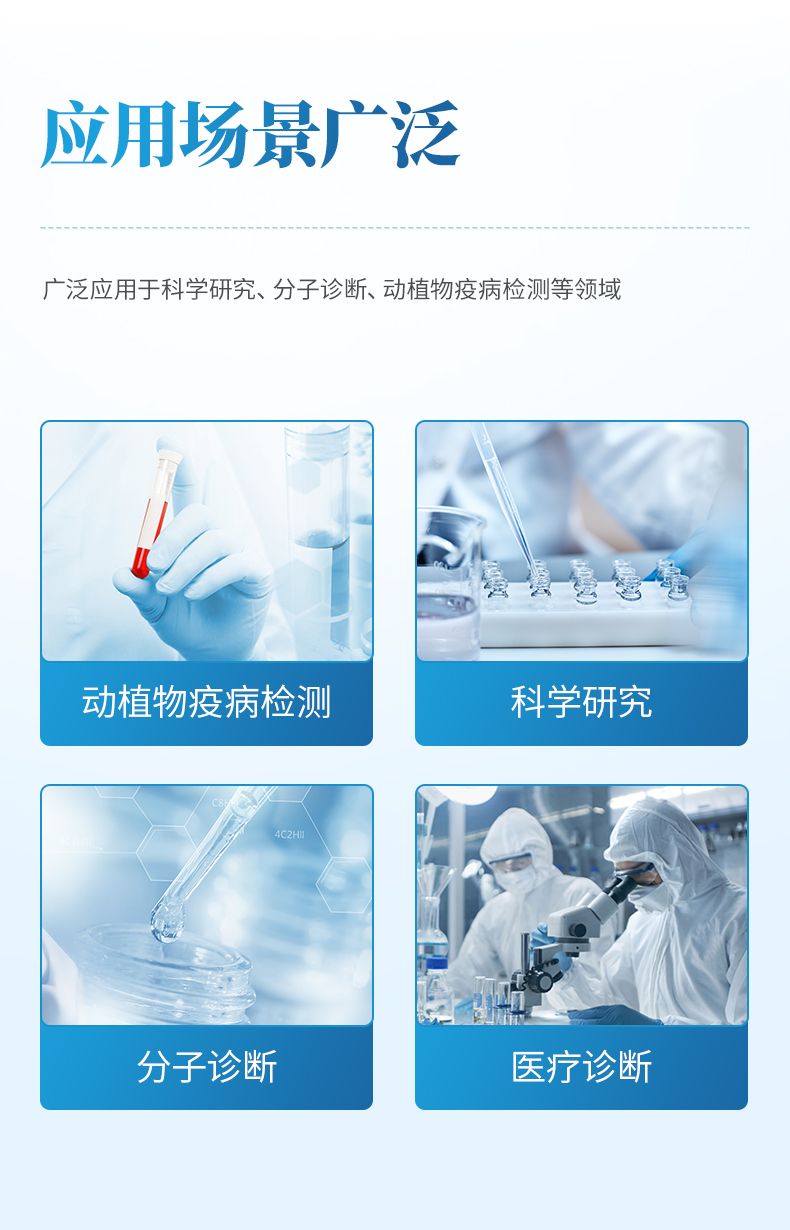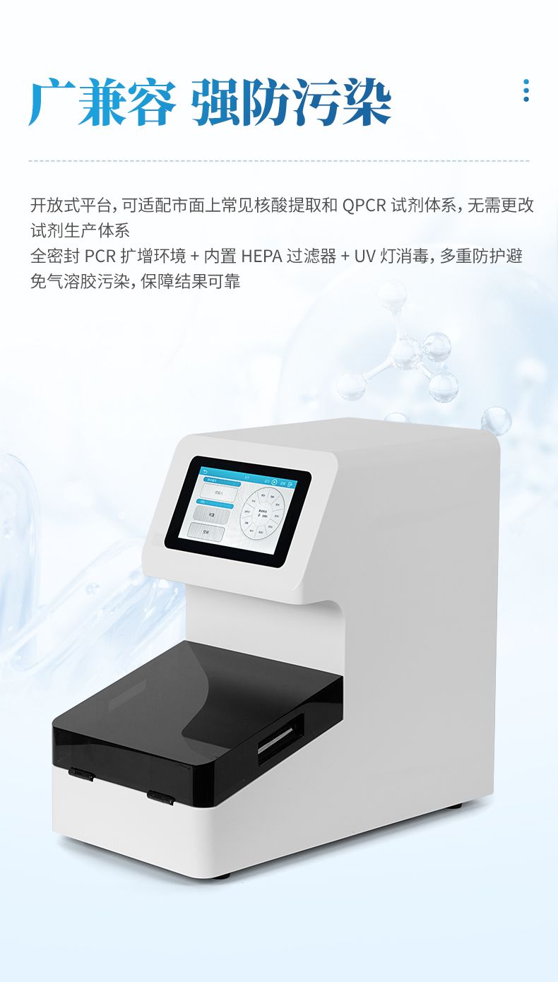 適用性廣:開放式平臺(tái),適配通用的核酸提取和QPCR體系,無需更改試劑生產(chǎn)體系即可實(shí)現(xiàn)全自動(dòng)檢測(cè)。