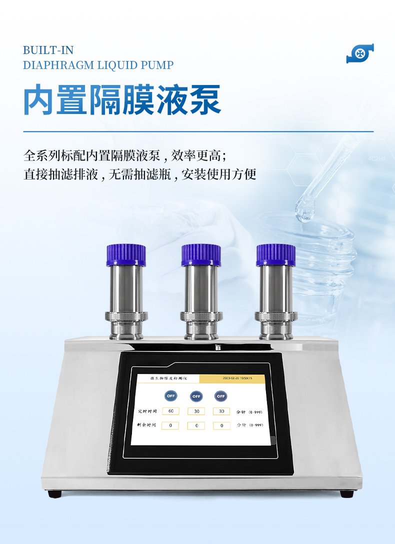 抽濾方式內(nèi)置隔膜液泵負(fù)壓抽濾,無(wú)需抽氣瓶