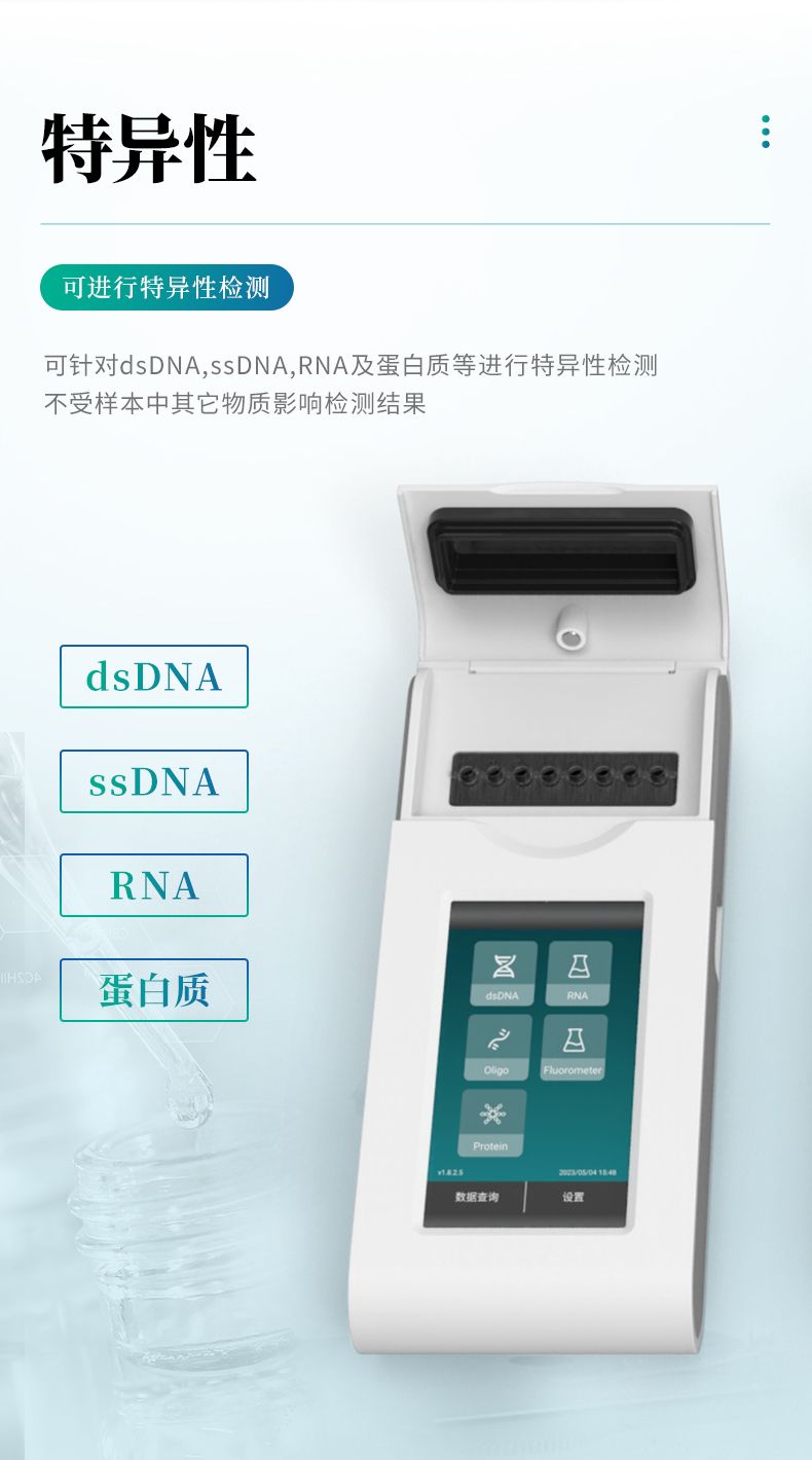 特異性---可針對dsDNA,ssDNA,RNA及蛋白質(zhì)等進(jìn)行特異性檢測,不受樣本中其它物質(zhì)影響檢測結(jié)果